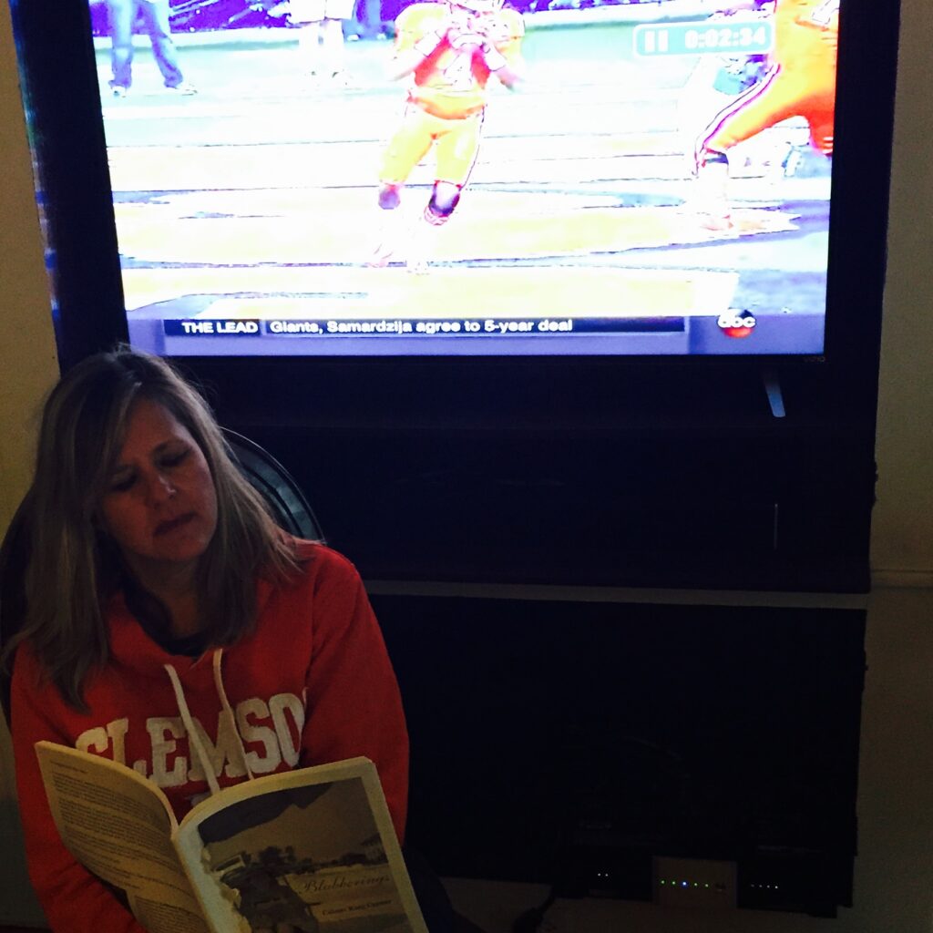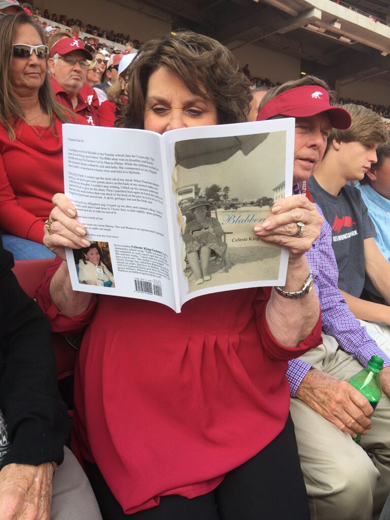 blabbering at the mailboxblabbering in the bathtubblabbering at book clubblabbering in Switzerlandblabbering in merry ole Englandthe hills are alive with blabberingblabbering at 3 amblabbering at 5, 6, and 10blabbering at 30,000 feetblabbering in line at Disneyblabbering with the Maddox Girls on vacationblabbering and squealingblabbering at Jordan-Hareblabbering at Bryant-Dennyblabbering at the Iron Bowlblabbering for Clemsonblabbering for the Oregon Ducksblabbering with cowbellsAtlantic blabberingGulf blabberingbalcony blabberingblabbering and suncreeningblabbering in the sandblabbering in the snowColorado morning blabberingrudimentary blabberingblabbering and ignoringblabbering with the dentistblabbering with a cavityblabbering between rescuesblabbering with Biscuitblabbering on the shelfbygone blabberingblabbering in Chinablabbering in Hawaiiblabbering down the hallblabbering at the National Peanut Festivalblabbering at the fairblabbering in the most sincere pumpkin patchblabbering on Dramamineblabbering and starting firesblabbering in prayerblabbering at the campoutblabbering at the cabinblabbering at the lakeblabbering in hip rehabblabbering on jury dutythe best blabberingblabbering over the river and through the woodsblabbering in Mis-sippiblabbering in Texasblabbering with sorority sisterblabbering in Sunday schoolblabbering love-allblabbering with Victor Hugoblabbering with marmalade sandwichesblabbering with great litblabbering back in the dayblabbering in the Great BeyondQuoth the Raven, “Blabber more”